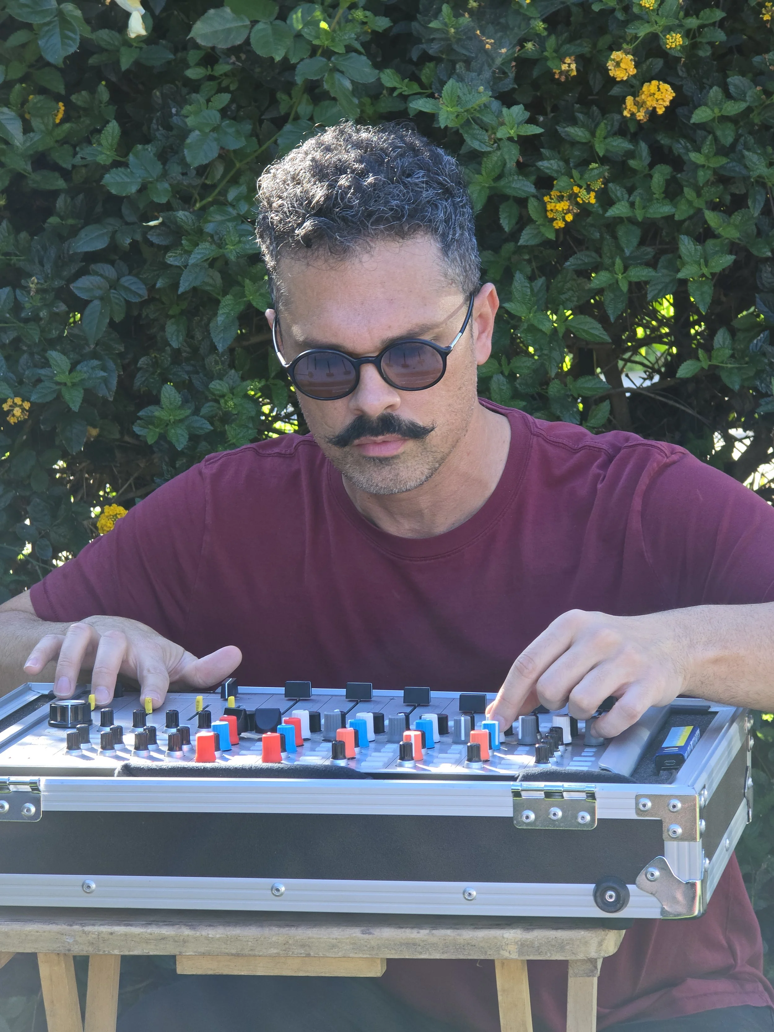 Marco created "La Soñadora", a virtual quadraphonic modular synthesizer to create live soundscapes for Atención Plena's meditations, an outdoor series he began in 2023. La Soñadora consists of over 200 interconnected sound modules used to generate sounds alongside field recordings of Ojai, San Pedro Friendship Bell, Los Angeles/Rio Hondo Rivers, and native percussion instruments. Marco morphs and manipulates these sounds through 4 independently modulated panners resulting in an immersive surround sound experience that he’s bringing to TreePeople to share with us. Despite La Soñadora's complex architecture, it was inspired by minimalist instruments such as "singing" or quartz bowls, bells, flutes, and sounds of fire, water, wind, and nature.