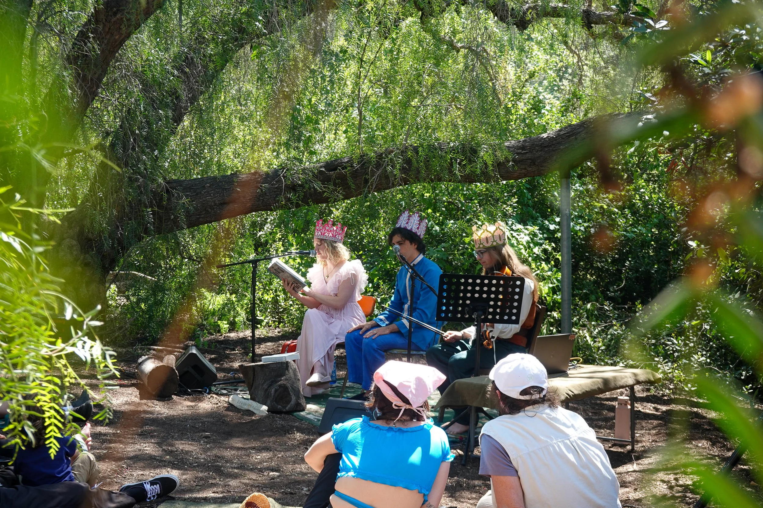 For this month’s Moonlight Hike we are so grateful to welcome Holy Pepperoni, our comrades in imagination, to TreePeople. Join us for an evening of fables, storytelling, and myth making atop Mulholland Drive with a live soundtrack provided by our own Noah Klein on flutes. We gathered with Holy Pepperoni earlier this year underneath a majestic peppercorn tree at the Audubon Center to share a heroes journey and deepen our all ages community through song and story. The afternoon did wonders for our hearts and we hope you’ll join us this evening.